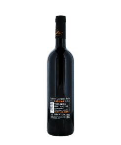 Opis: Rubinski crveno vino s jarkim ljubičastim odsjajem. Bordeaux blend iz Hrvatskog zagorja. 70% Cabernet sauvignon i 30 % Merlot.